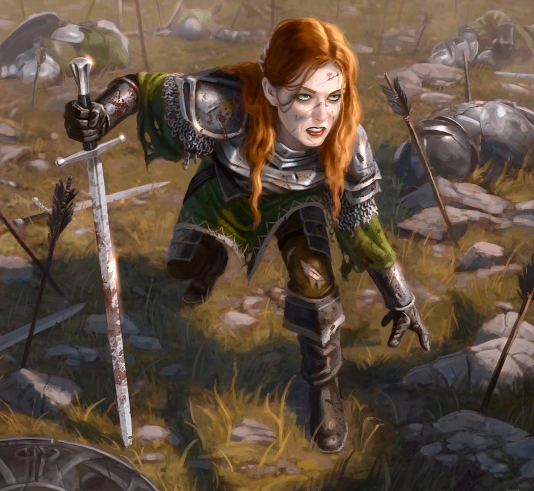 In the light of the fading sun, Narielle saw her own shadow on the ground, the point of her sword in its center. She looked over her handiwork as the soldier cleared the last corpse and ran toward her.